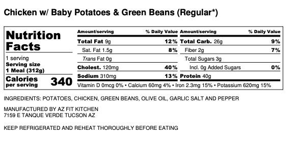 Perfectly seasoned baked chicken is paired with roasted baby potatoes and steamed green beans.