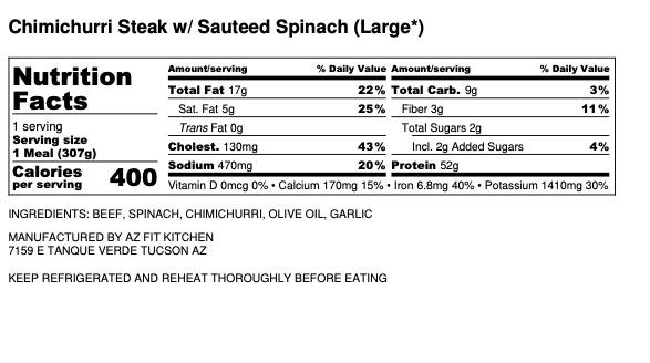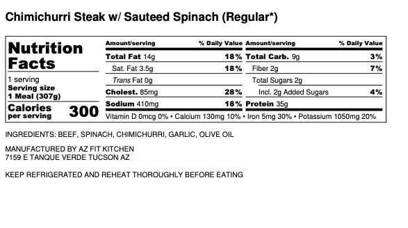 Trimmed flank steak with a bit of kick, paired with our perfectly prepared spinach.